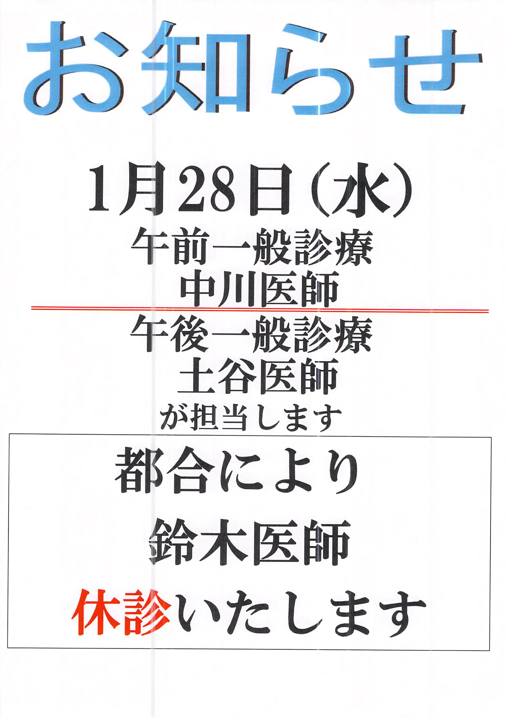 年末年始 診療のお知らせ